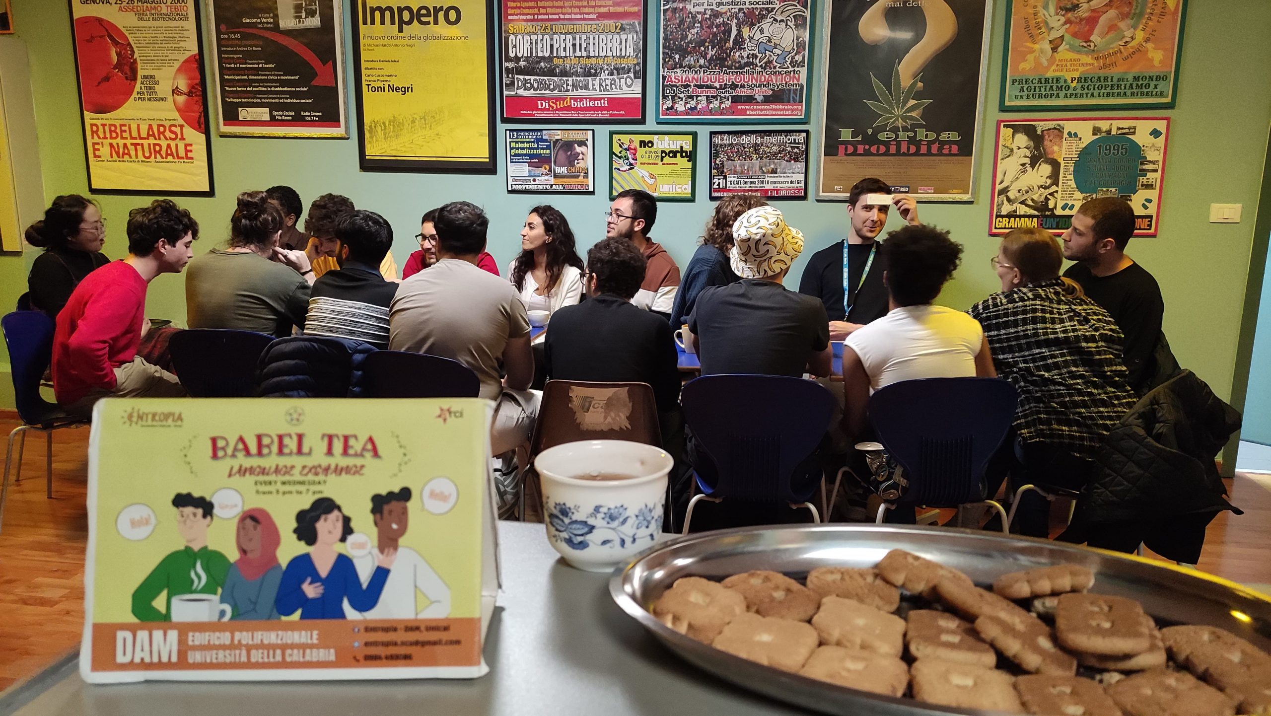 Ogni Mercoledì dalle ore 17 alle 19 al DAM dell'Università della Calabria, l'associazione Entropia organizza il “Babel Tea” con il supporto dei volontari del Servizio Civile Universale e del Corpo Europeo di Solidarietà. Obiettivo del progetto è creare un momento di socialità, aggregazione e scambio per superare le barriere linguistiche e culturali.