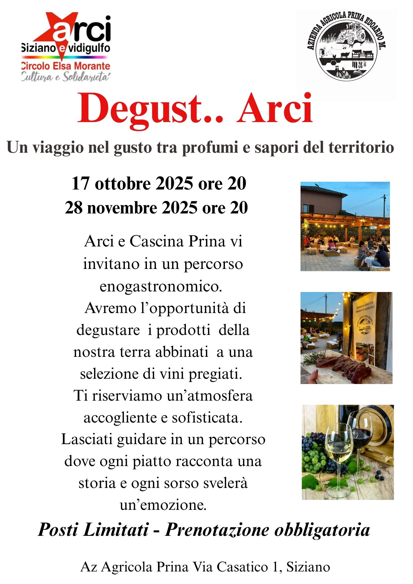 Unisciti a noi per due serate speciali! Il Circolo Arci Elsa Morante e l'Azienda Agricola Prina vi accompagneranno ad una serata dedicata ai veri amanti del gusto.