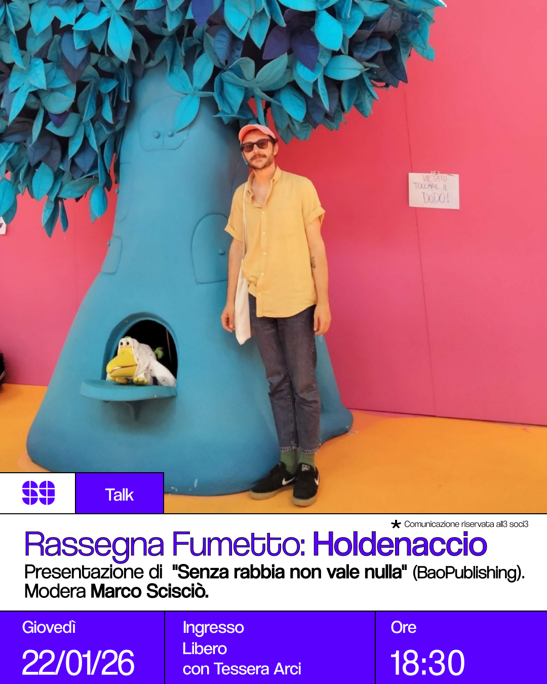 Holdenaccio nasce nel 1990, come “Mamma ho perso l’aereo” e “Piccola peste”. Araldo delle melanzane, è quello che lancia la pietra e nasconde la mano o urla a squarciagola nei concertini emocore. Dopo una breve parentesi torinese, dove realizza le sorpresine dell’ovetto di cioccolato, torna a Taranto per fare fumetti. Nel 2019 esordisce con BAO Publishing pubblicando Umberto e Elliott Smith – Going nowhere.