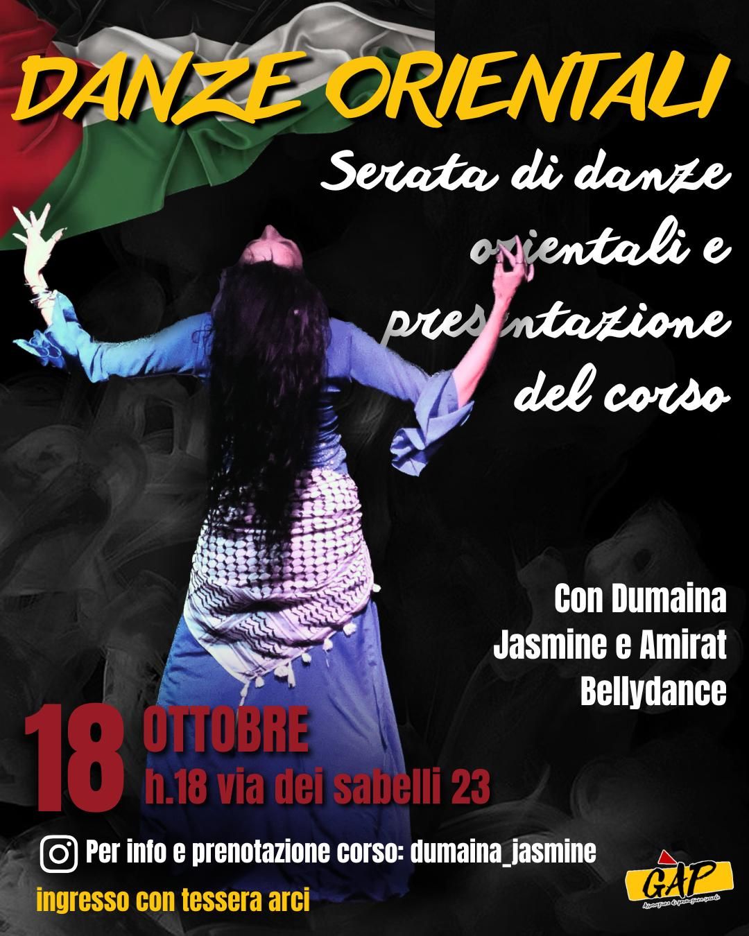 Ti aspettiamo sabato 18 ottobre alle ore 18:00 al Circolo Gap per una serata dedicata alla presentazione del nuovo corso di DANZE ORIENTALI, con Dumaina Jasmine e Amirat Bellydance.