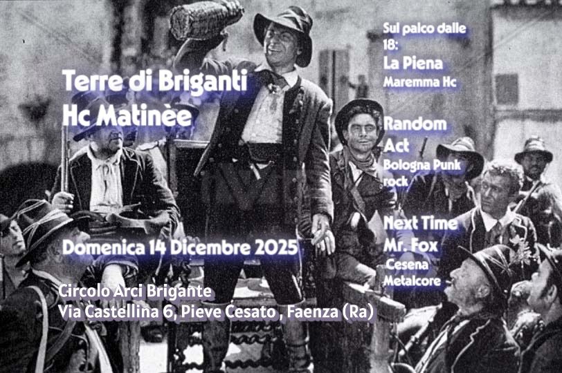 Domenica 14 dicembre nel vostro Arci Agropunk preferito delle campagne faentine un matinée pomeridiano con tre band belle frizzanti: