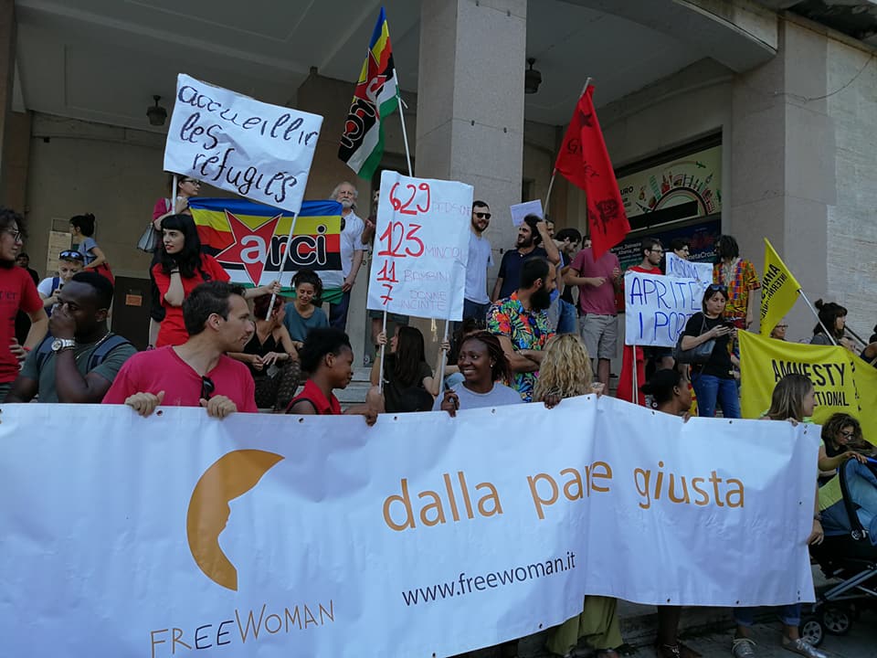 presidio Porti Aperti! in piazza della Vittoria