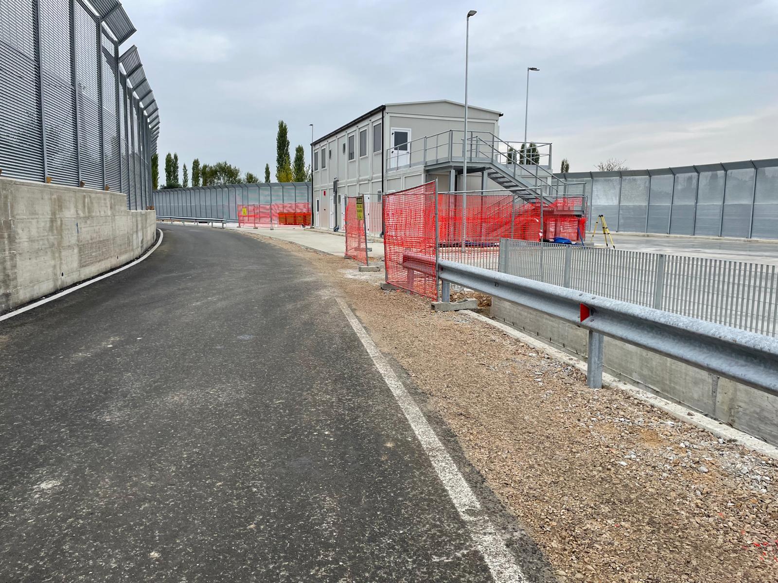 Di fianco al cancello attraverso il quale si accede nel recinto alto sette metri di ferro zincato, un cartello avverte con poco senso della grammatica che nel cantiere si entra solo con il caschetto, le scarpe antinfortunistiche, e che “è rigorosamente vietato l’ingresso a tutte le persone estranee ai lavori”.