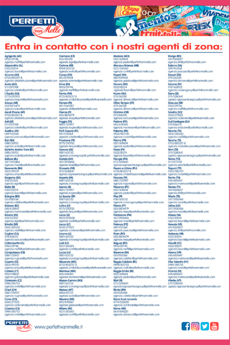 Siamo uno dei principali gruppi al mondo che produce e commercializza chewing gum e caramelle, raggiungendo circa 200.000 punti vendita su tutto il territorio nazionale.