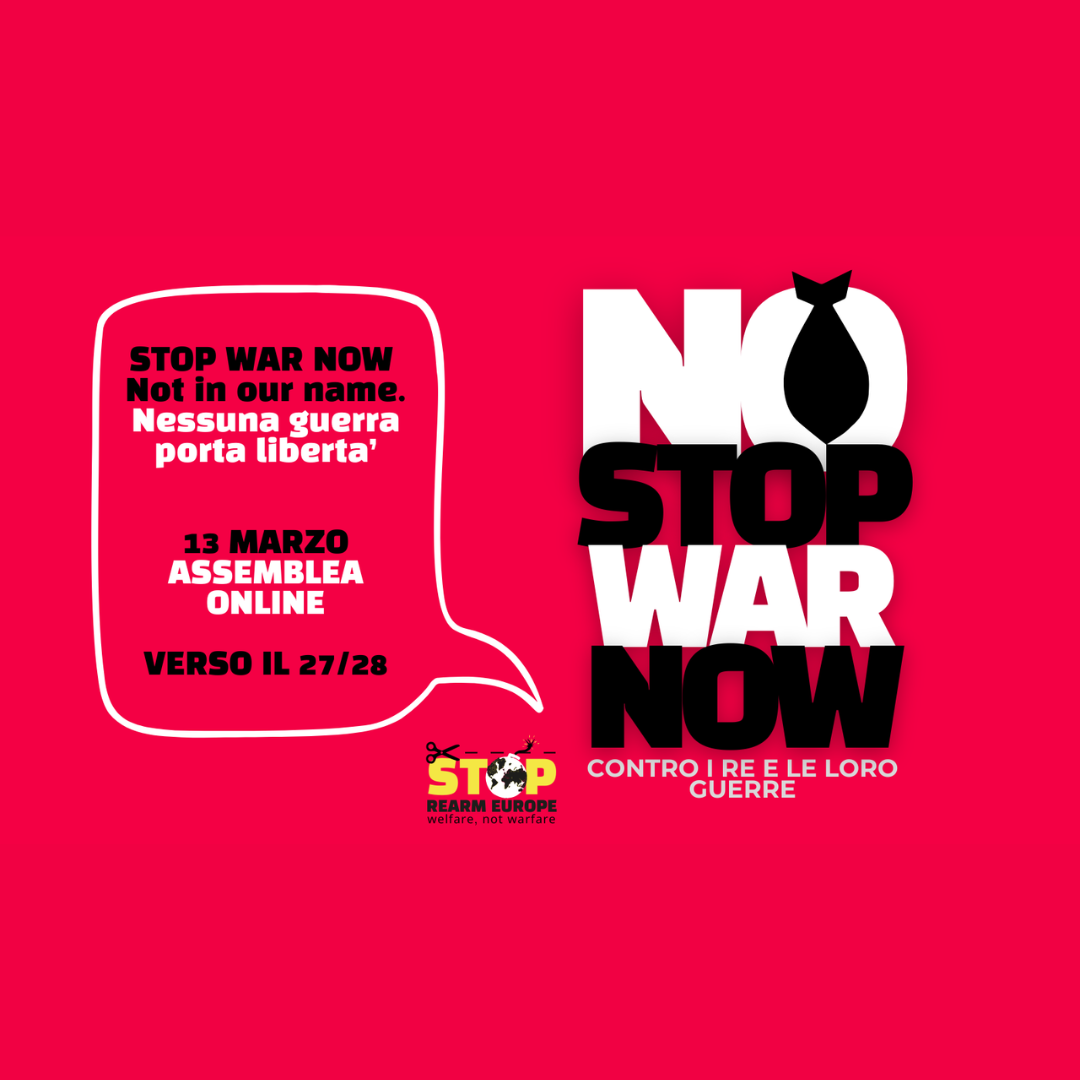 Incontriamoci nell’assemblea nazionale online di Stop Rearm Europe il 13 marzo alle ore 17.00 a questo link.